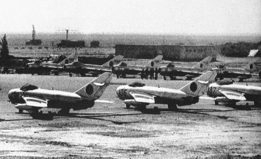 Kandahar Havalimanı'nda Sovyet yapımı MiG-17 jetleri, 5 Şubat 1980