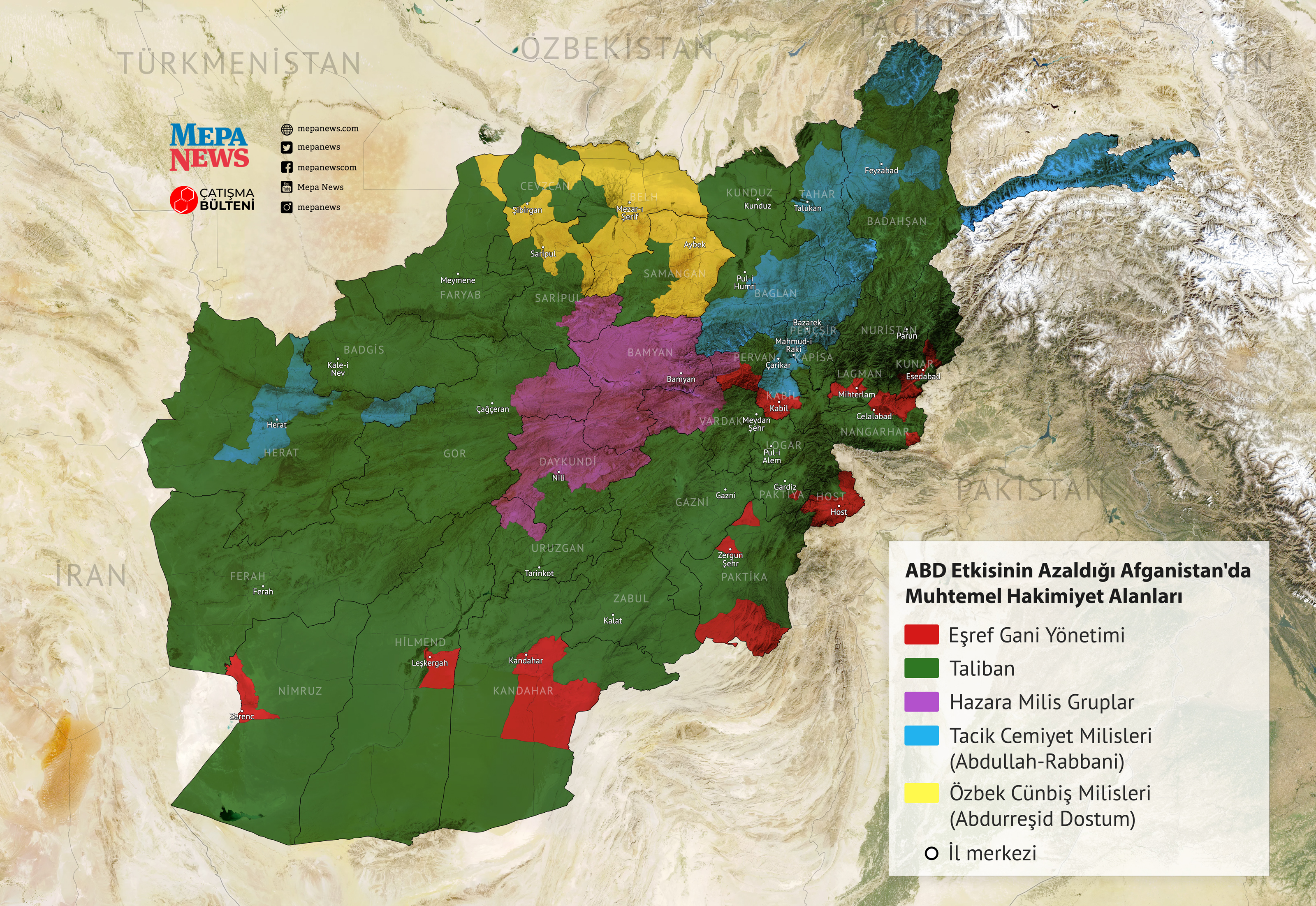 Bu doğrultuda Gani yönetiminin, ABD'nin etkisi azalırken Kabil, Kandahar, Leşkergah, Host, Celalabad, Zergun Şehr gibi bazı şehir merkezlerinde kontrol sahibi olacağı tahmin ediliyor. Gani yönetiminin bu şehirleri kısa süre içerisinde kaybetmeye başlayacağını söylemek de zor değil.
