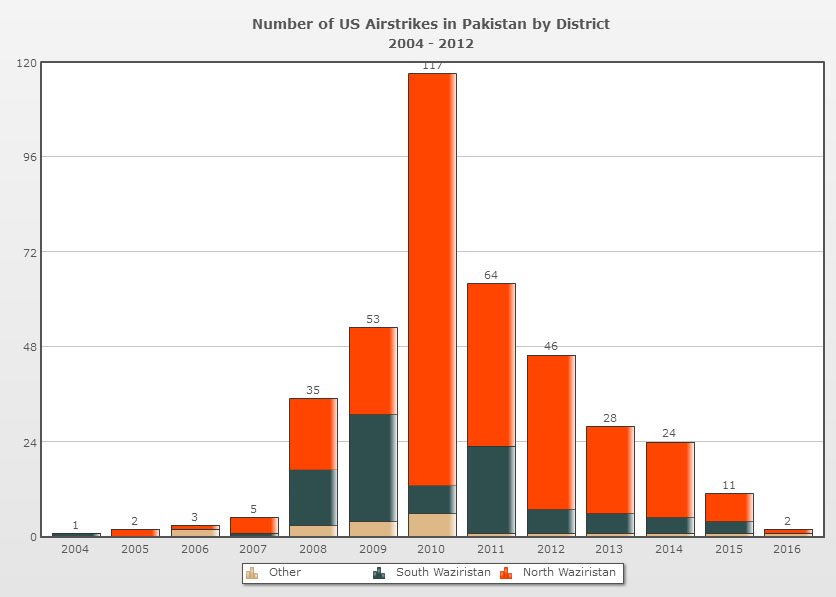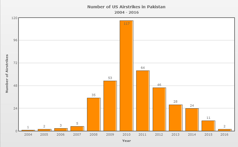 ABD’nin Pakistan’daki saldırılarında, Temmuz 2008’de sıçrama yaşandı ve düzenli olarak bu saldırılara devam edildi. 2004’ten bu güne kadar 391 saldırı gerçekleşirken; bunların 380 tanesi Temmuz 2008’den sonra vukubulmuşlardır.