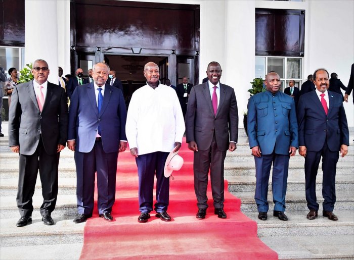 Toplantıda, Mogadişu yönetimi lideri Hasan Şeyh Mahmud, Burundi Cumhurbaşkanı Evariste Ndayishimiye, Cibuti Cumhurbaşkanı Ismail Omar Guelleh, Kenya Devlet Başkanı William Ruto ve Etiyopya Başbakan Yardımcısı ve Dışişleri Bakan Demeke Mekonnen'in yanı sıra Afrika Birliği'nden yetkililer de yer aldı.