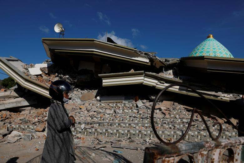 Endonezya'nın Lombok adasında meydana gelen depremden hasar gören cami. 7 Ağustos.