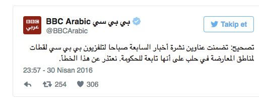 İzzedin'in İstifası sonrası yapılan yalan haber hakkında BBC bir özür tweeti yayınladı.Özür twettinde "Katliamın yapıldığı Muhaliflere bağlı bölgeyi rejime ait şeklinde sunulan haberimiz için özür dileriz" denildi