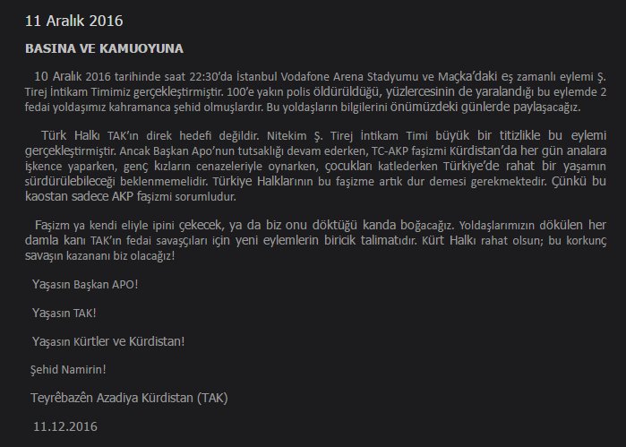 TAK'ın üstlenme açıklaması: