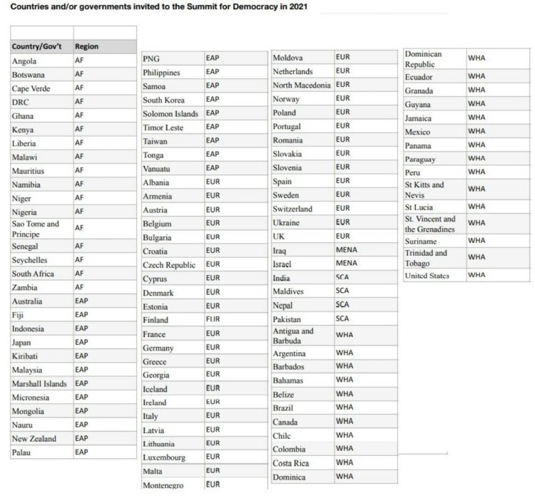 POLITICO‘nun dış haberler muhabiri Nahal Toosi‘nin elde ettiği katılımcı listesinde 106 ülke bulunuyor. Henüz kesinleşmemiş 106 ülkenin yer aldığı listede Türkiye yer almıyor.