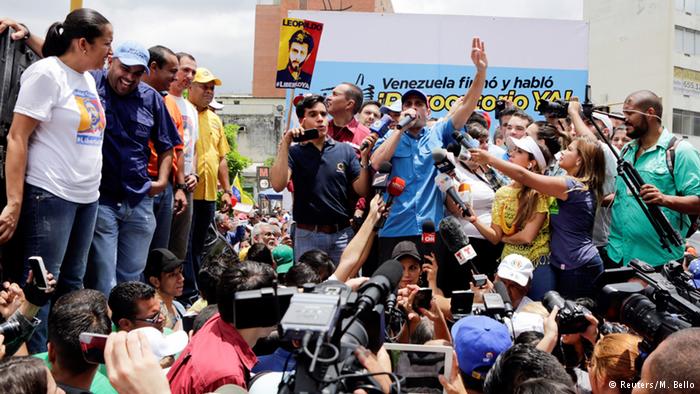 Başkent Caracas'ta dün hükümet karşıtları da bir araya geldi. Demokratik Birlik İttifakı adlı oluşumdan Jesus Torrealba yaptığı konuşmada “Yasallık ve anayasaya uygunluğun sınırında ümitsiz bir başkandan söz ediyoruz” diye konuştu. Torrealba "Eğer bu olağanüstü hal Ulusal Meclis ile istişare edilmeden çıkartılmışsa, teknik olarak bir kendine darbeden söz ediyoruz demektir" diye konuştu.