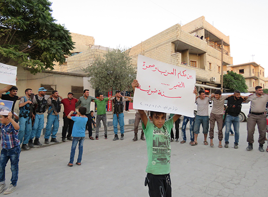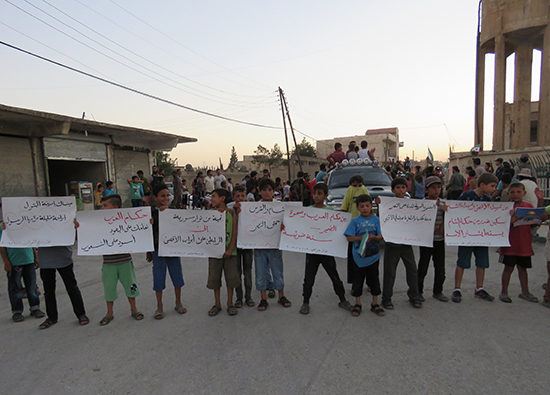 Göstericiler, ''Suriye devrimcilerinden Kudüs kapılarında bekleyenlere selam olsun", "Ey Peygamberler şehri, Kudüs'' yazılı dövizler taşıdı.