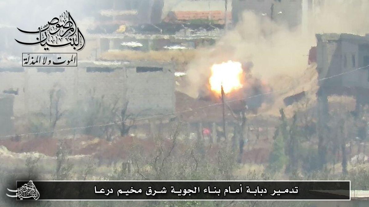 Bölgede muhaliflerin rejime karşı direnişi şimdilik başarılı görünüyor. Dera'daki ağırlıklı gücü teşkil eden "Bunyan El Mersus" doğudaki Hava İstihbarat binası bölgesinde ilerlemeye çalışan bir rejim tankını TOW ile vurarak imha etti.