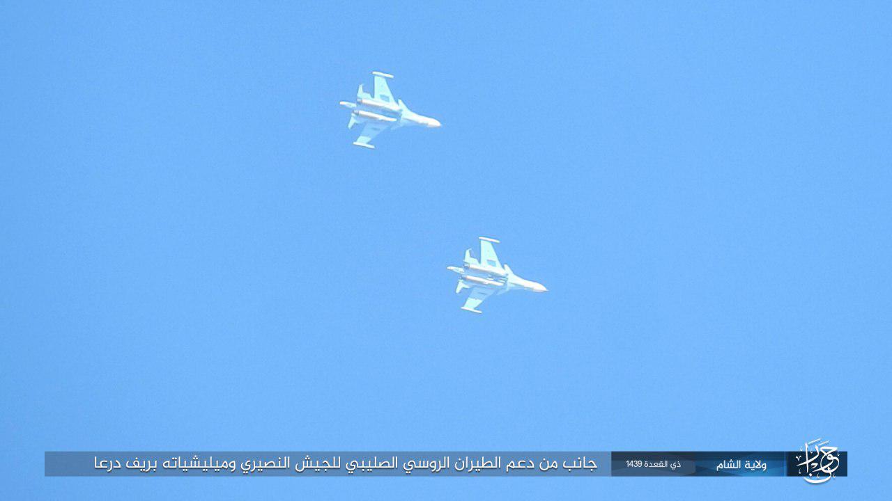 IŞİD ayrıca bölgede Esed rejimi ve İran'a bağlı güçlere destek veren Rus savaş uçaklarına ait görüntüleri de yayınladı. Örgüte bağlı propaganda kanalının yayınladığı görüntülerde Rusya'ya ait iki adet Su-34 tipi savaş uçağı havada görülüyor: