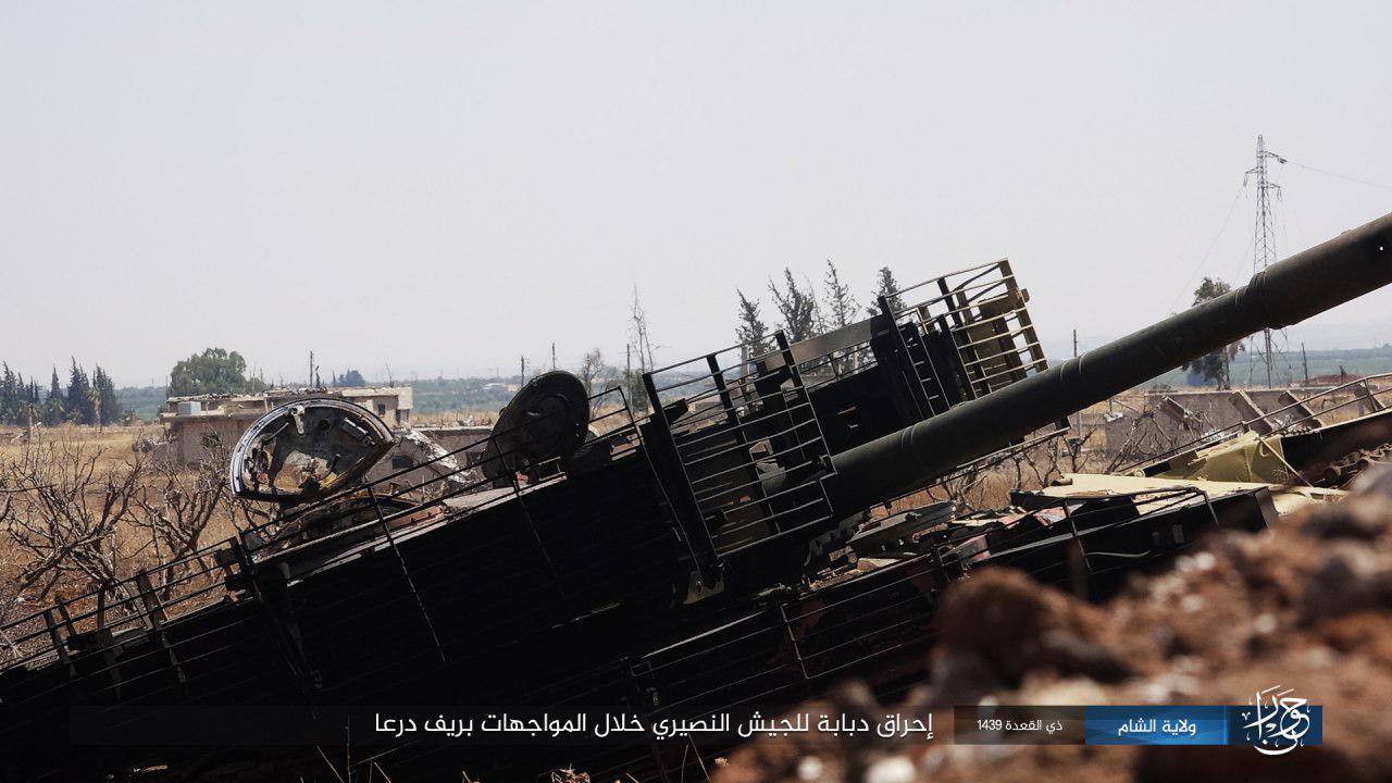 Yine örgüt tarafından yayınlanan görsellerde rejimin ilerleyiş hattı üzerindeki mevzilere düzenlenen baskına ait görüntüyle, tahrip edilmiş bir tanka ait görüntü de bulunuyor: