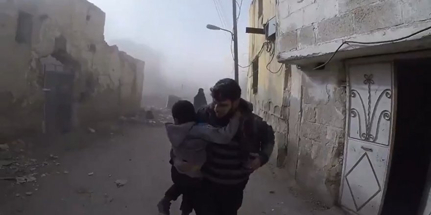 Suriye Sivil Savunma örgütü gönüllüleri, yaralı sivilleri kurtarmak için çalışırken doğrudan vuruldu. Doğu Guta'nın Jisreen kentinde konut bölgelerine yapılan acımasız hava saldırıları sonrasında çocuklardaki panik görüntülere yansıdı.