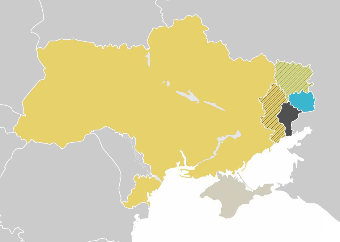 Grafikte Rusya destekli güçlerin kontrolündeki Donetsk (siyah) ve Luhansk (mavi) bölgeler yer alıyor. Taralı alanlar ise bu iki bölgenin -şu an için- Ukrayna kontrolündeki kısımlarını gösteriyor.