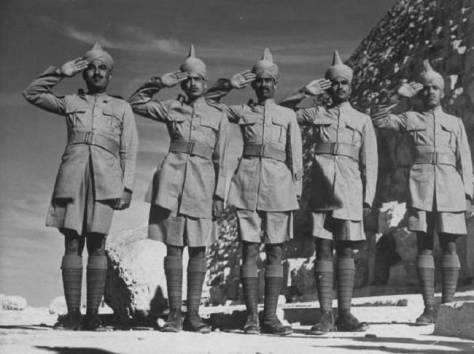 Times of India’da yayınlanan bir yazıya göre bu askerlerin çoğunluğunu Punjabi Müslümanları ve birazını da Pathanlar oluşturmaktaydı. Fotoğraf Almanlar tarafından esir alınan ve bir kampta tutulan bir Hindistanlı birliğe aittir.