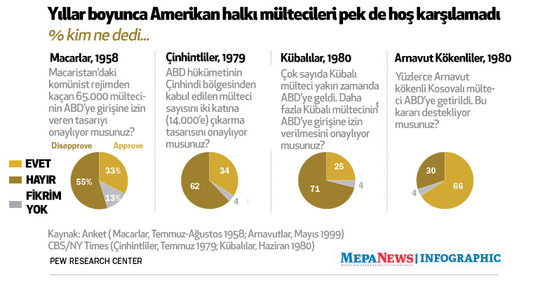 8) Büyük mülteci kabulleri Amerikan halkı tarafında nadiren hoş karşılanıyor. 2015 yılının Kasım ayında Paris’teki IŞİD saldırılarından sonra Bloomberg Politics tarafından yapılan bir ankete göre Amerikalıların %53’ü Suriyeli mültecilerin hiçbirinin kabul edilmemesi gerektiğini söylerken %11’lik bir kısım ise sadece Hristiyan olanların kabul edilmesi gerektiğini belirtti. Geçtiğimiz birkaç 10 yıl bize Amerikan halkının - resmi hükümet politikalarından bağımsız olarak - savaş ve baskıdan kaçan mülteci kabullerinin karşısında durduğunu gösteriyor.