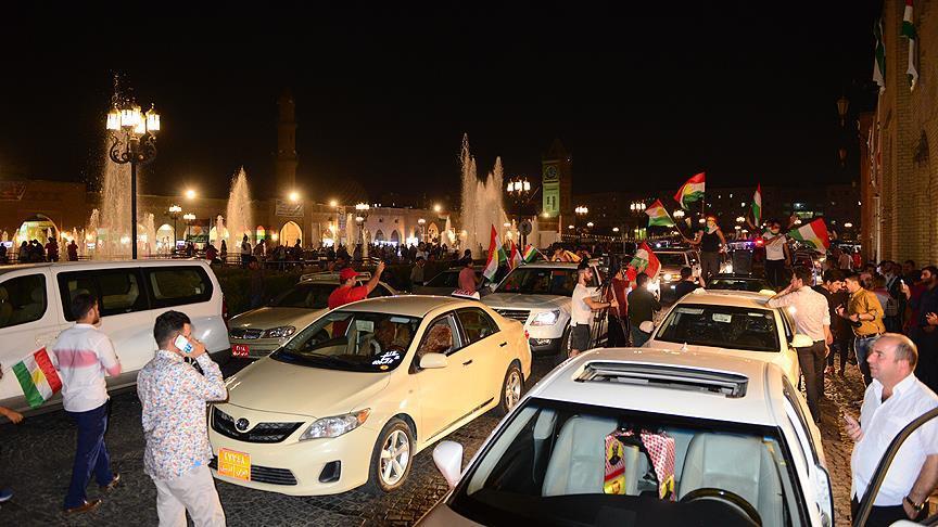 Erbil kentinde binlerce vatandaş, referandumun düzenlenmesi ve resmi olmayan sonuçlara göre yüksek bir katılımın olmasından dolayı caddelere çıktı.