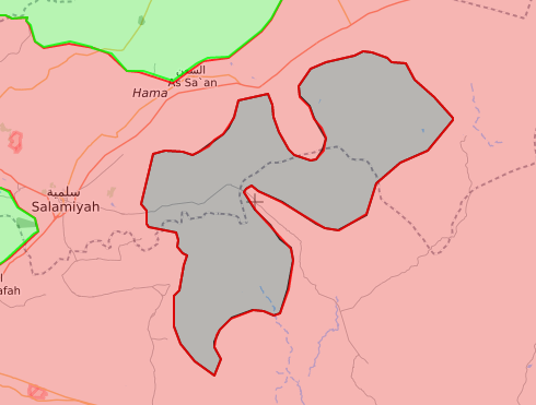 Hama doğusunda kuşatmaya alınan IŞİD savaşçıları rejim güçlerine karşı direniş gösteriyor. [Kırmızı: Esed rejimi, Siyah: IŞİD]