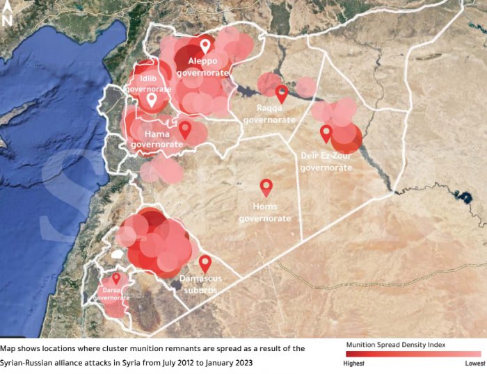 Rusya ve İran destekli Esed rejimi, Temmuz 2012 ile Ocak 2023 tarihleri arasında Suriye genelinde en az 496 misket bombalı saldırı gerçekleştirdi.
