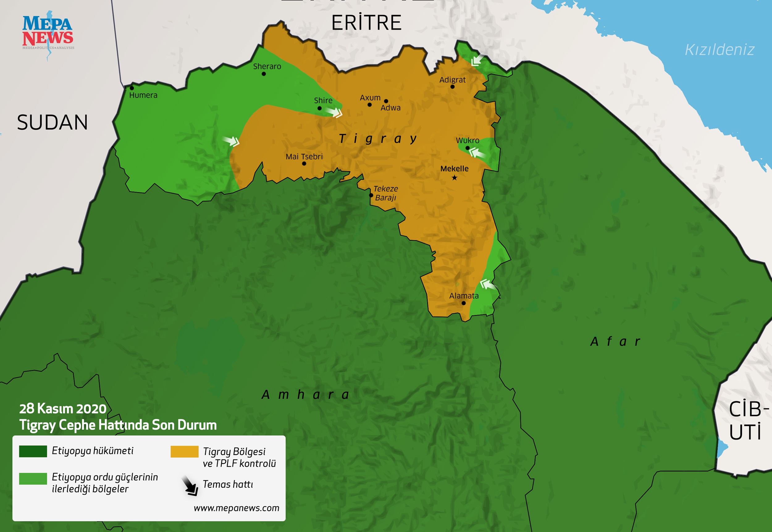 Etiyopya ordu güçleri, Tigray başkenti Mekelle'ye kuzey ekseninden ilerleyerek, Mekelle kuzeyindeki Necaş ce Wukro yerleşimlerini kontrol altına aldı.