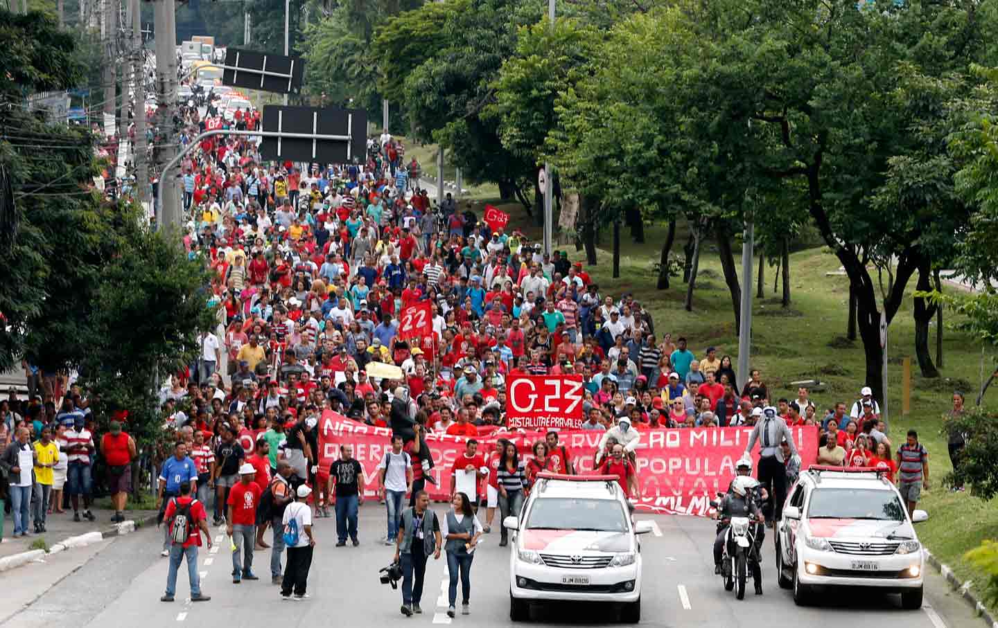 Brezilya'nın Sao Paulo kentinde bulunan Sao Bernardo do Campo bölgesinde yaşayan Evsiz İşçiler Hareketi'ne (MTST) bağlı binlerce kişi, yaşamakta oldukları kampın kamulaştırılmasının ardından protesto düzenledi.