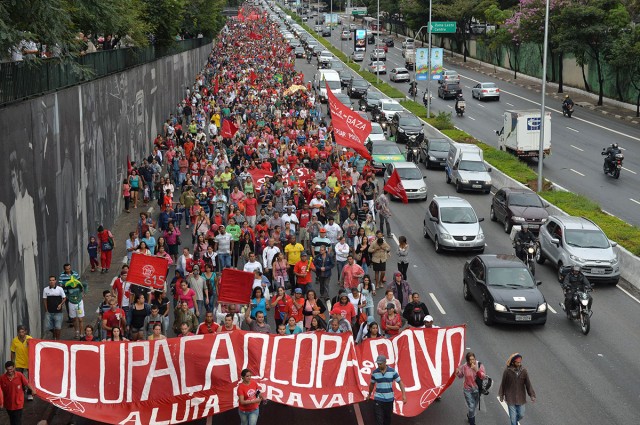 Brezilya'nın Sao Paulo kentinde Evsiz İşçiler Hareketi'ne bağlı binlerce kişi, yaşamakta oldukları kampın kamulaştırılmasının ardından protesto düzenledi.