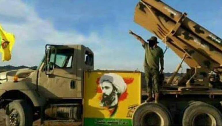 [Felluce operasyonunda Haşdi Şaabi milisleri tarafından kullanılan askeri araçlara Şii din adamı el-Nimr'in fotoğrafları asıldı.]
