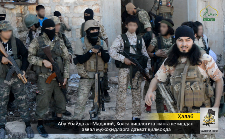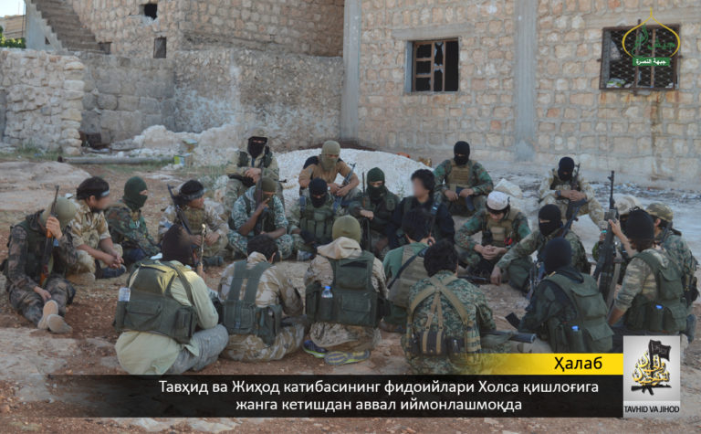 Nusra Cephesine bağlı bulunan ve Özbek savaşçılardan oluşan Tevhid ve Cihat Ketibesi'nin paylaştığı harita ve fotoğraflar:
