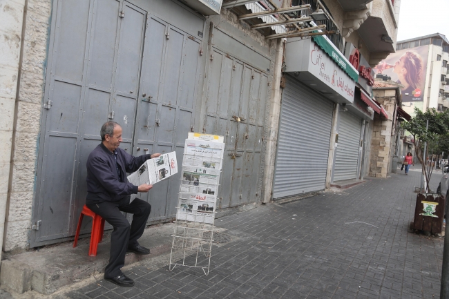 Çağrının ardından, Batı Şeria'nın Ramallah kentindeki esnaf iş yerlerinin kepenklerini kapattı.