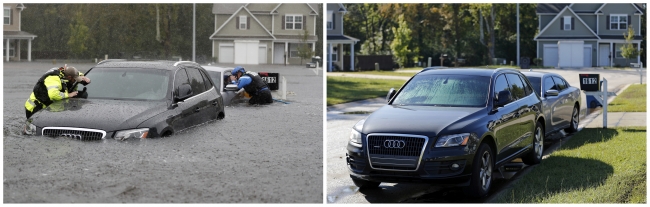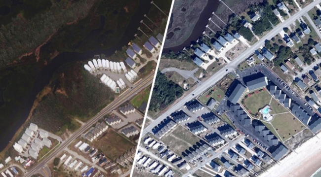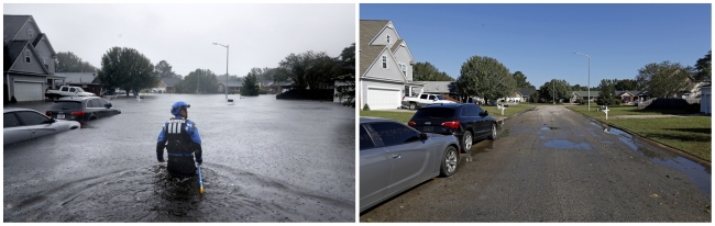 ABD Ulusal Okyanus ve Atmosfer İdaresi tarafından hava fotoğrafları çeken kameralarla çekilen fotoğraflar, Kuzey Carolina'da yaşanan afetin boyutunu gösterdi.