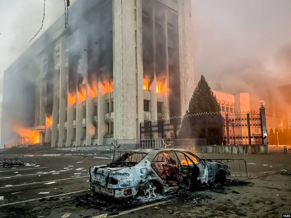 Almatı şehri merkezinde belediye binası yanıyor, 6 Ocak