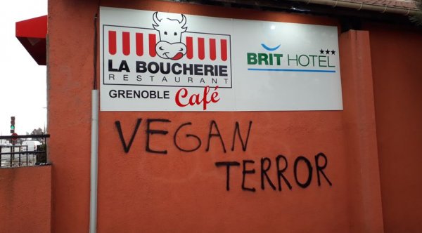 Veganlar, dün Fransa'nın Grenoble kentinde bulunan bir et restoranına saldırıda bulundu.