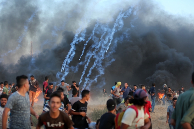 İsrail askerleri ise "sürgün edildikleri topraklarına geri dönmeyi ve 2006'dan beri Gazze'ye uygulanan hukuksuz ablukanın kaldırılmasını" talep eden halkın üzerine gerçek mermilerle ateş açıyor.