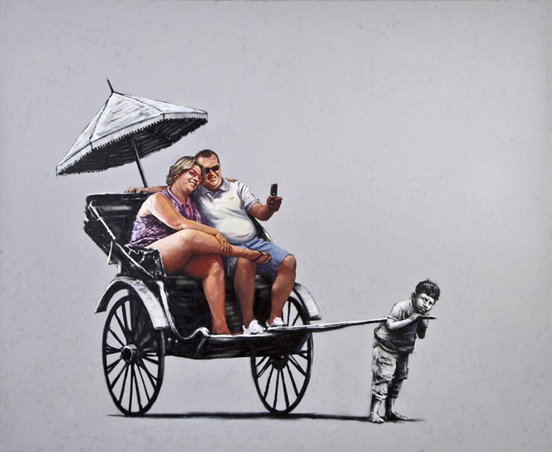 Banksy, 10 yıldır başta İngiltere olmak üzere farklı ülkelerde yaptığı çarpıcı duvar resimleriyle ünlenen sanatçı. Gerçek kimliği bilinmemektedir, Banksy eserlerinde kullandığı imzasıdır. "Gerilla artist" olarak anılan sanatçı çalışmalarında savaş karşıtı