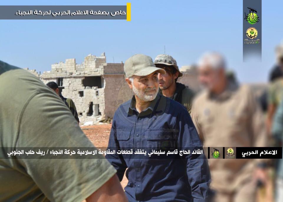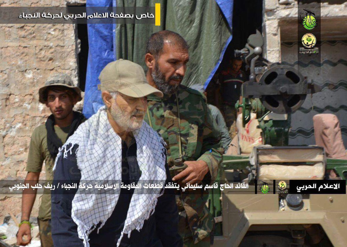 Suriye'de bulunan en geniş Iraklı Şii grup olan Nuceba Hareketi, 6 Eylül'de Güney Halep'ten Süleymani'nin de yer aldığı bir dizi fotoğraf yayınladı. Fotoğraflarda, Süleymani'nin "teröristler tarafından kuşatma altında tutulan stratejik noktaları gözden geçirdiği" ifade edildi.