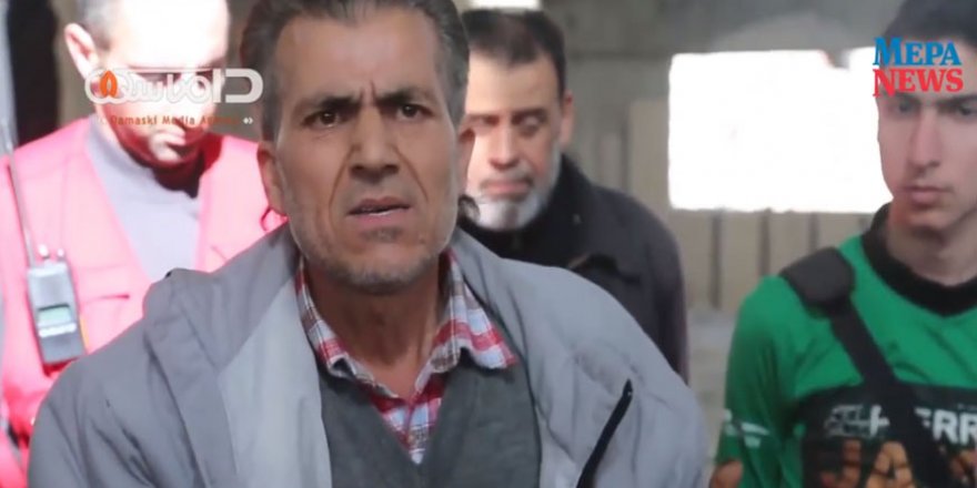 Doğu Gutalı bir sivil, beldede yaşanan insani krizle ilgili, bölgeye yardım götüren Birleşmiş Milletler yetkililerinin önünde Rusya ve İran tarafından desteklenen Esed rejimine tepkisini gösteriyor.