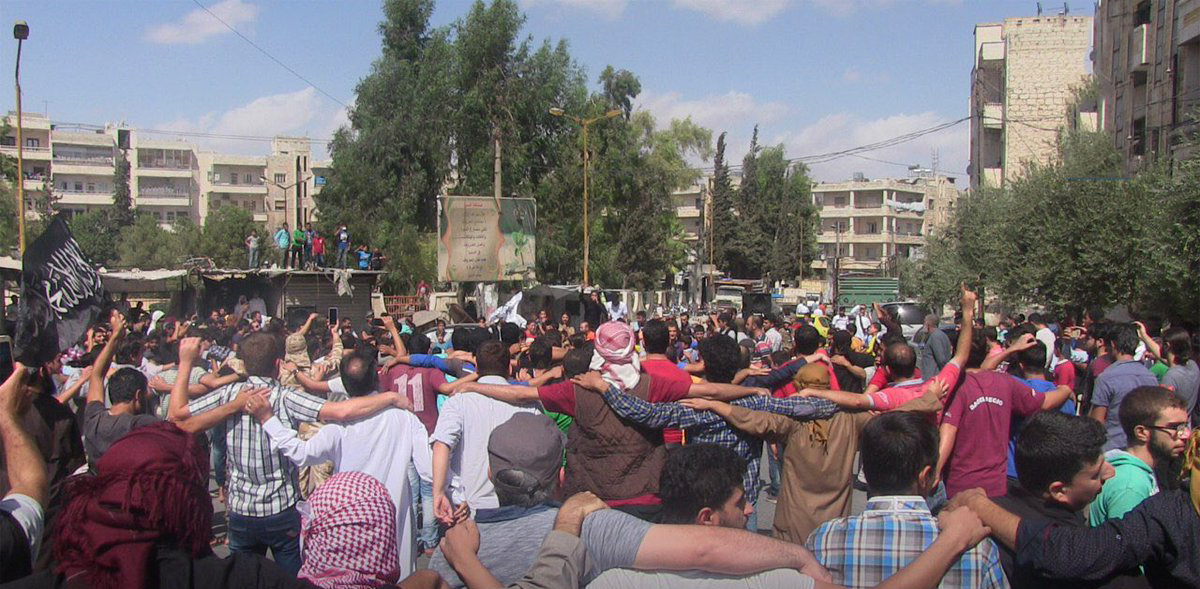 Cuma namazı sonrası İdlib şehir merkezinde toplanan çok sayıda Suriyeli toplantıda alınan kararları protesto etti. Göstericiler Esed rejimi ve müttefikleri aleyhine sloganlar attı.