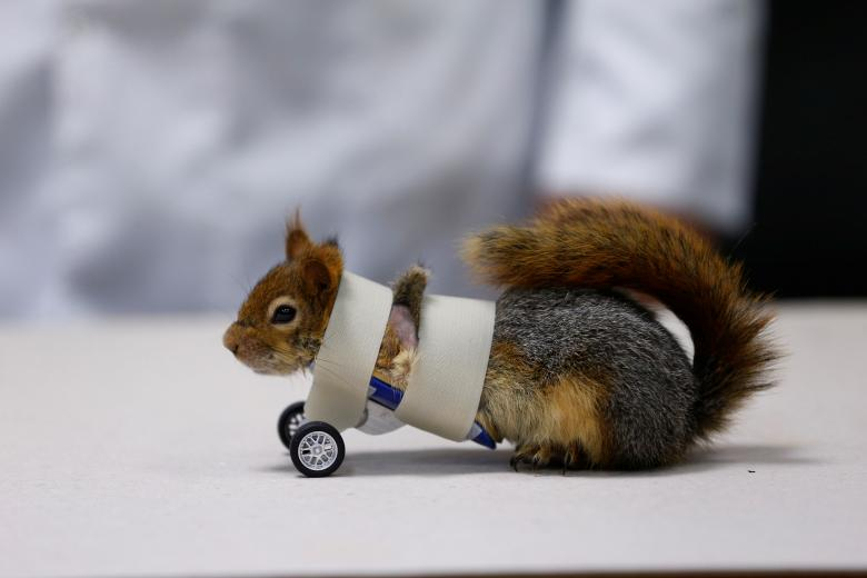 İstanbul'da Aydın Üniversitesi'nde uzuv amputasyon ameliyatı sonrasında bir sincap.