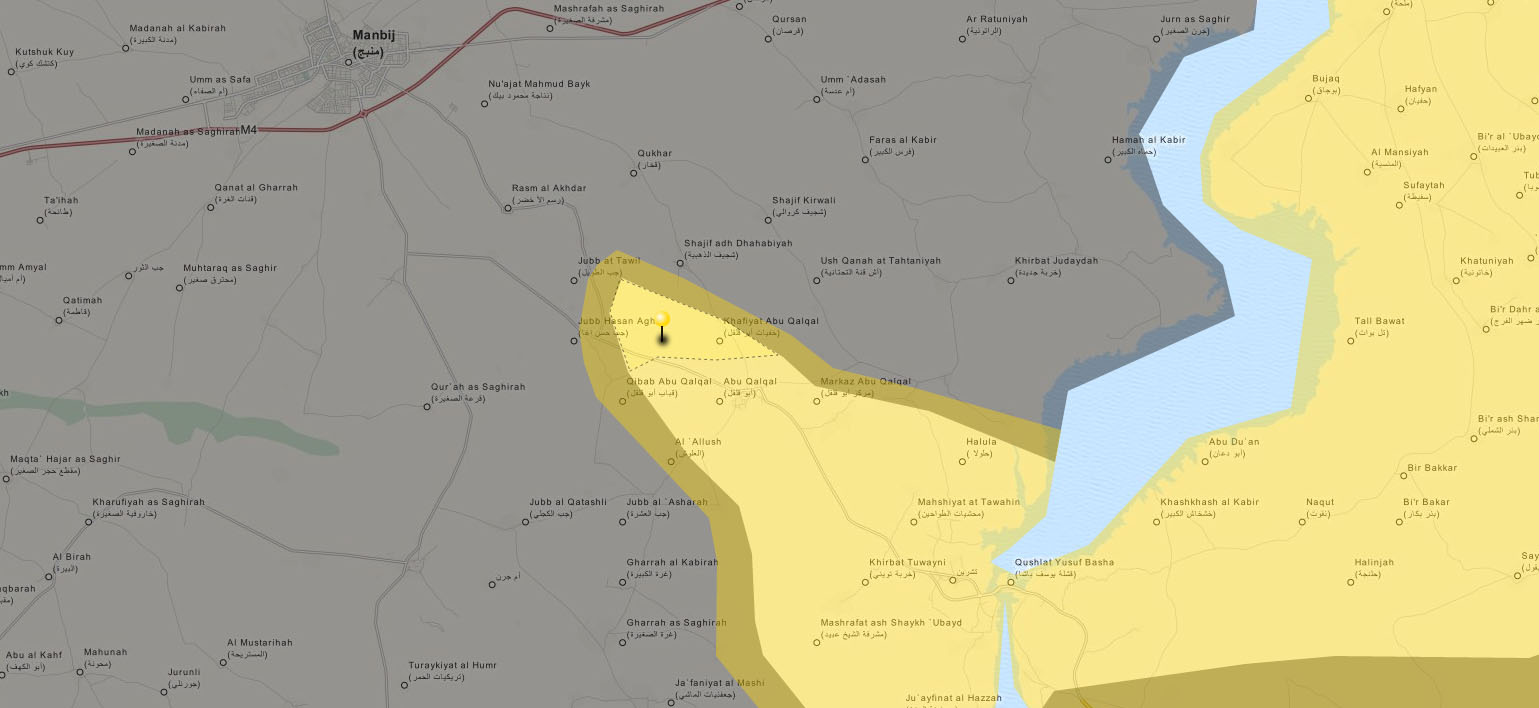 Menbec [Manbij] çevresinde son durum haritası ( Sarı: PYD, Siyah: IŞİD)