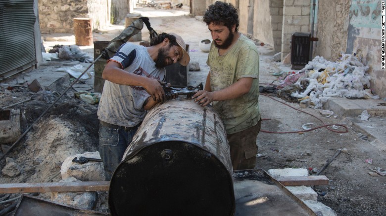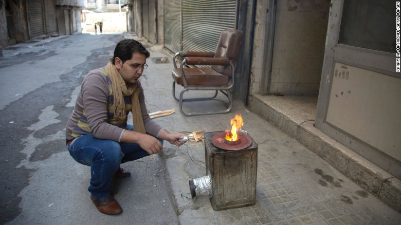 Halep'in doğusundaki mahallelerden Kerem El Cebel'de yaşayan Halid Kürdiye'ye göre bu durum onları "taş devrine dönmeye zorluyor." Kürdiye, "teneke kutu" olarak tabir edilen, dışarısında bir fan bulunan ve kontrol edilebilir odun alevi yakmaya yarayan metal kutu fikrinin arkasındaki isim. "Teneke kutu" gaz sobalarının yerini tutuyor.