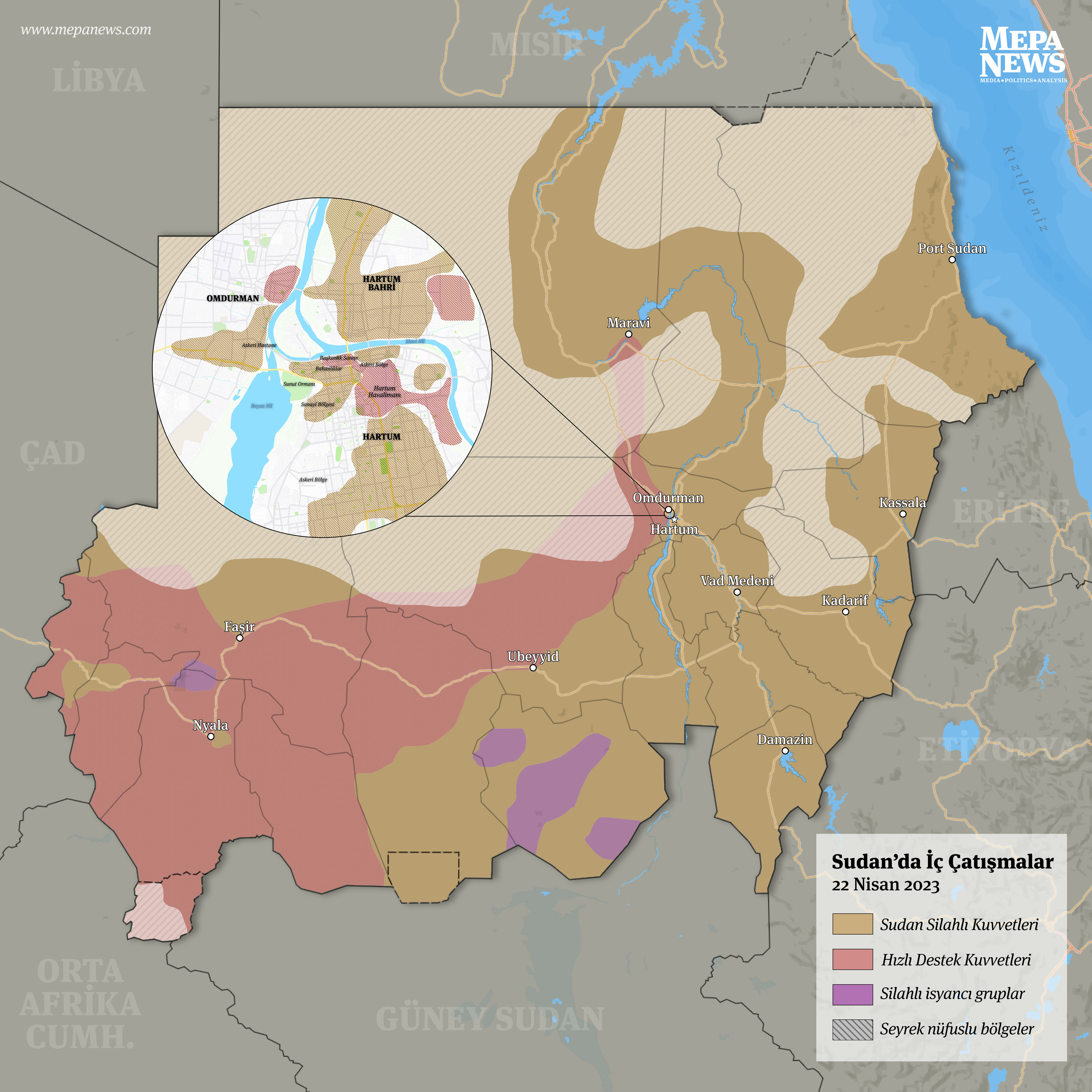 22 Nisan itibarıyla Sudan'da son durum ve yaklaşık kontrol alanları şu şekilde: