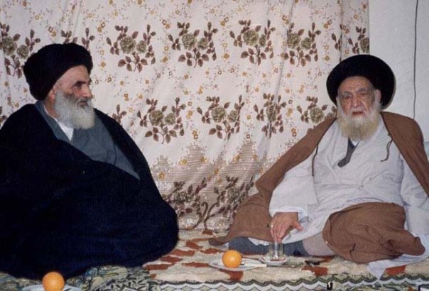 Ebulkasım el-Hoyi (sağda) 1980'li yıllarda talebesi Ali Sistani'yle
