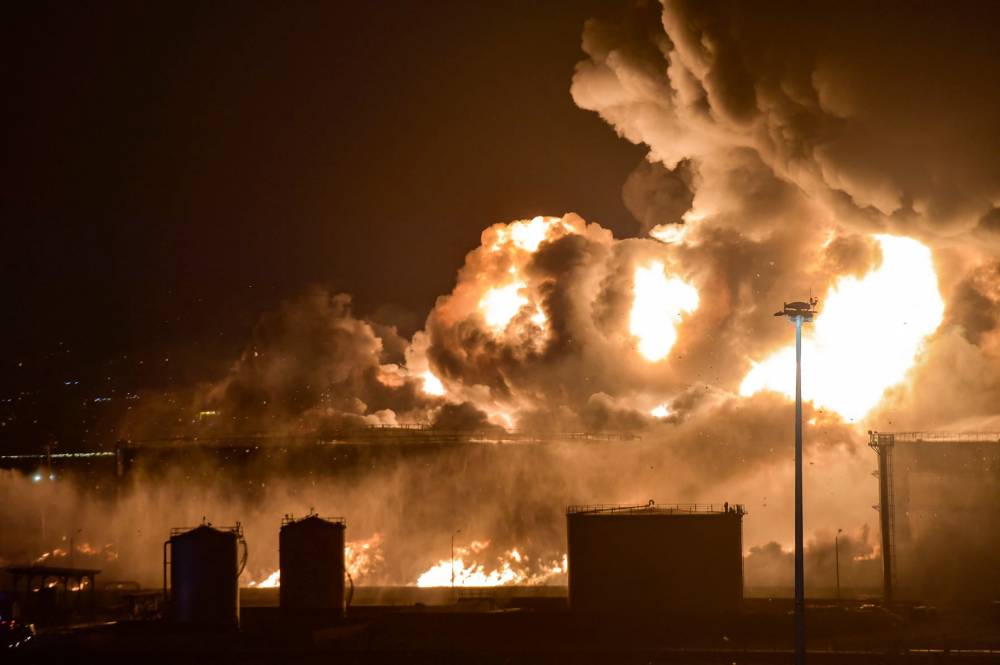 Husilerin saldırdığı Suudi petrol tesislerindeki yangından kareler