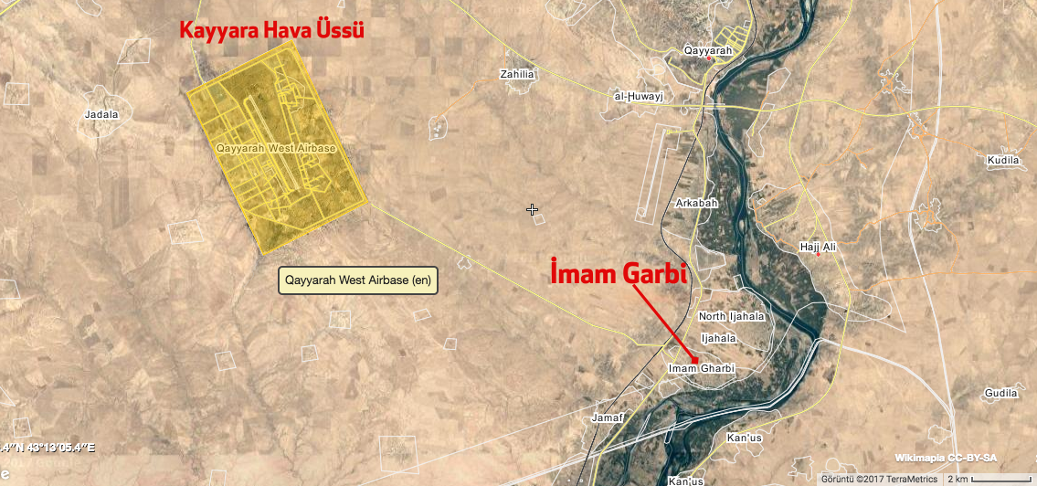 Musul'un güneyindeki Kayyara Hava Üssü'nün konumu: