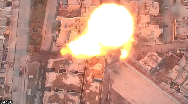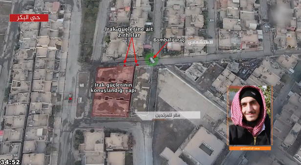 Patlamayı kanalize etmek ile ilgili IŞİD'in Musul ile ilgili daha önce servis ettiği propaganda filminden bir örnek, filmde bomba yüklü aracın hedefe doğru gitmeden farklı bir açıyla patlatıldığı görülüyor.