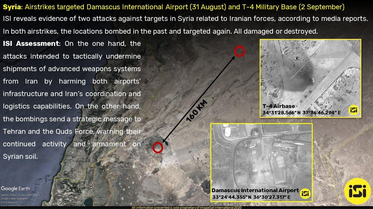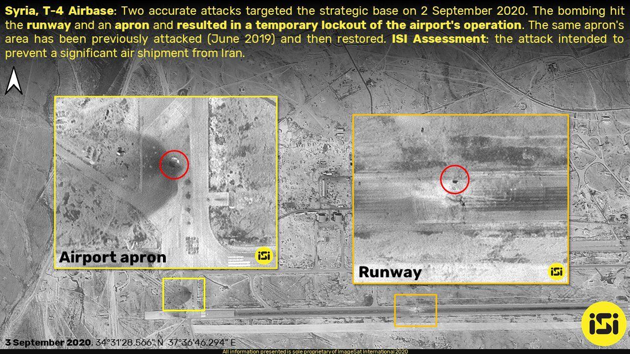 İki gün sonra başka bir saldırıyla Suriye'nin Humus ili doğusunda bulunan T-4 hava üssündeki bir pist hedef alınırken İsrail, her iki havaalanının da İran tarafından Suriye'ye mühimmat getirmek için kullanıldığını öne sürdü.