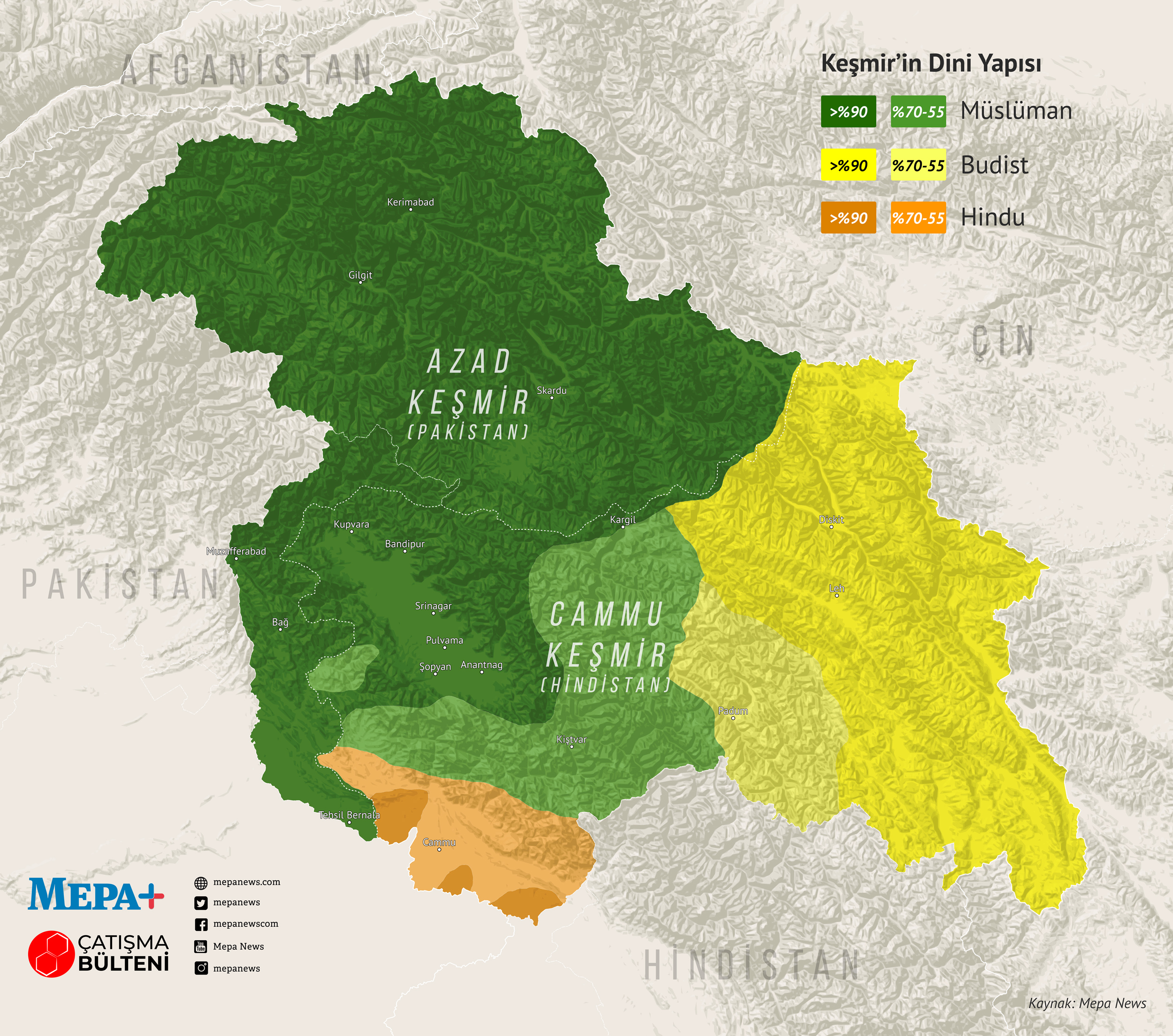 Bölge nüfusunun %65'inden fazlası Müslüman. Çatışmaların ana merkezi Keşmir Vadisi'nde bu oran neredeyse yüzde 100'e yakın.