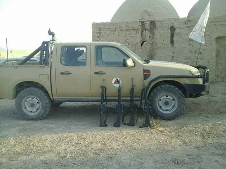 Askeri merkezdeki komutanlarını öldürdükten sonra Taliban saflarına katılan askerlerin olduğu görüntülerde, askerlerin silahları ve bir Ranger aracın da olduğu görülüyor.