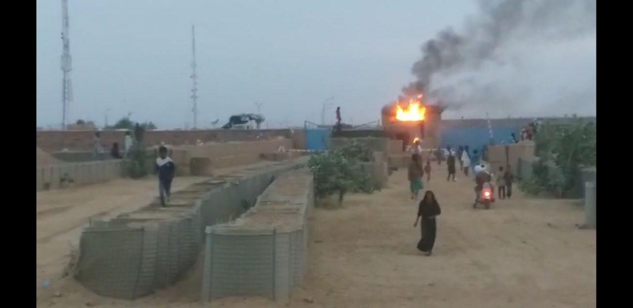 Bir süredir üssün önünde sloganlar atan göstericiler, yapılan uyarı atışlarına rağmen dün üssün girişindeki nöbet kulelerinden birini ateşe verdi. Göstericiler daha sonra üssün yakınından uzaklaşırken, olası saldırı ihtimaline karşı üs içerisinde alarm durumuna geçildiği belirtildi.
