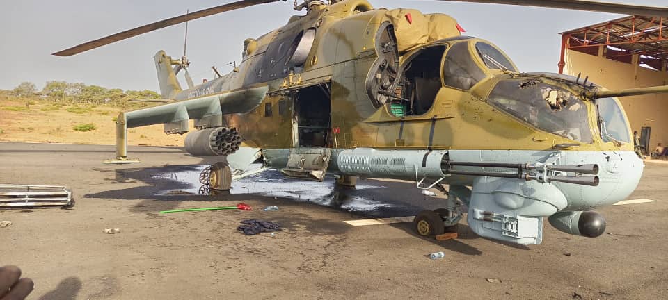 #Mali #Mi24 endommagé au sol au camp de #Bapho, donc il s’agit bien d’attaques simultanées ce matin pic.twitter.com/LUyTiQ5Q6O