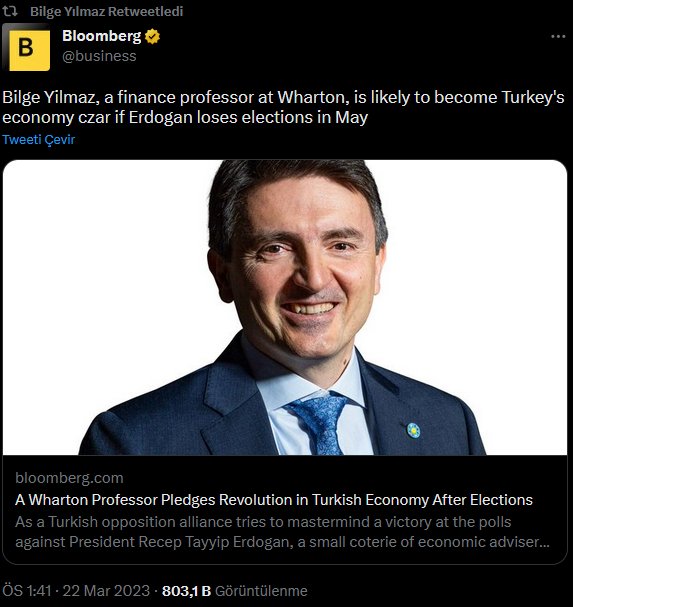 Bilge Yılmaz da Bloomberg'in söz konusu haberini kendi Twitter sayfasından paylaştı.