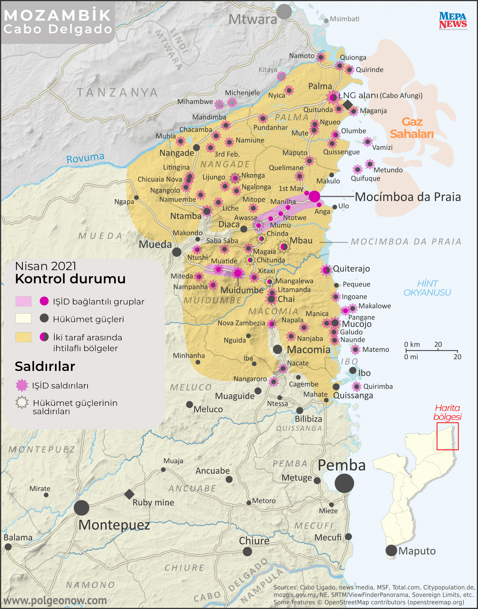 "Political Geography Now", Mozambik'in kuzeyindeki Cabo Delgado bölgesineki son duruma ilişkin bir harita hazırladı.