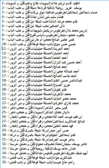 Esed rejimi destekçisi sayfalar başta Tartus olmak üzere Suriye genelinde bu hafta içinde muhalifler tarafından öldürülen ve içlerinde rütbelilerin de olduğu çok sayıda askerin yasını tutuyor. Tartus'ta yayın yapan rejim yanlısı bir gazete ise Rejimin Tartus'taki kayıplarının haberini, "Şubat ayının ilk haftasında yaklaşık 30 asker ulusumuzun onurunu savunmak adına şehit oldu" şeklinde verdi.